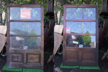 高さ、幅共に大きめで立派なつくりです。スプライト、コーラ、マルボロのステッカーがレトロなムードです。在庫のうち1枚はステッカー無しの状態です。世田谷区の煙草屋兼曳家さんで使われていたものです。
