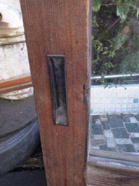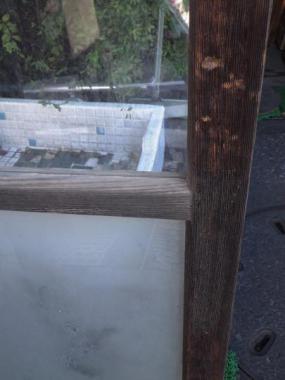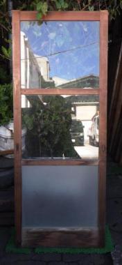 神奈川県三浦市の農家で使われていたものです。上2段が透明ガラス、一番下が曇りガラスになっています。古いガラスでよれているのが魅力です。