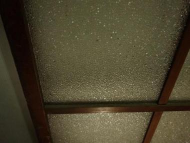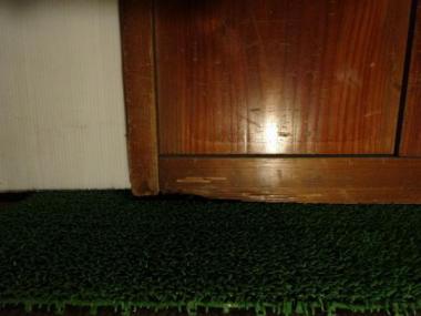 ダイヤ模様のガラスが入っています。左下がすこし削れてしまっています。