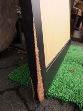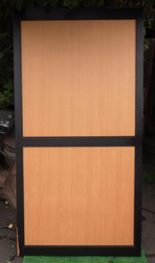 新宿のお寺で使われていたものです。桟や帯が漆黒で締りのあるデザインです。在庫のうち1枚だけ下の方に傷みがみられます。