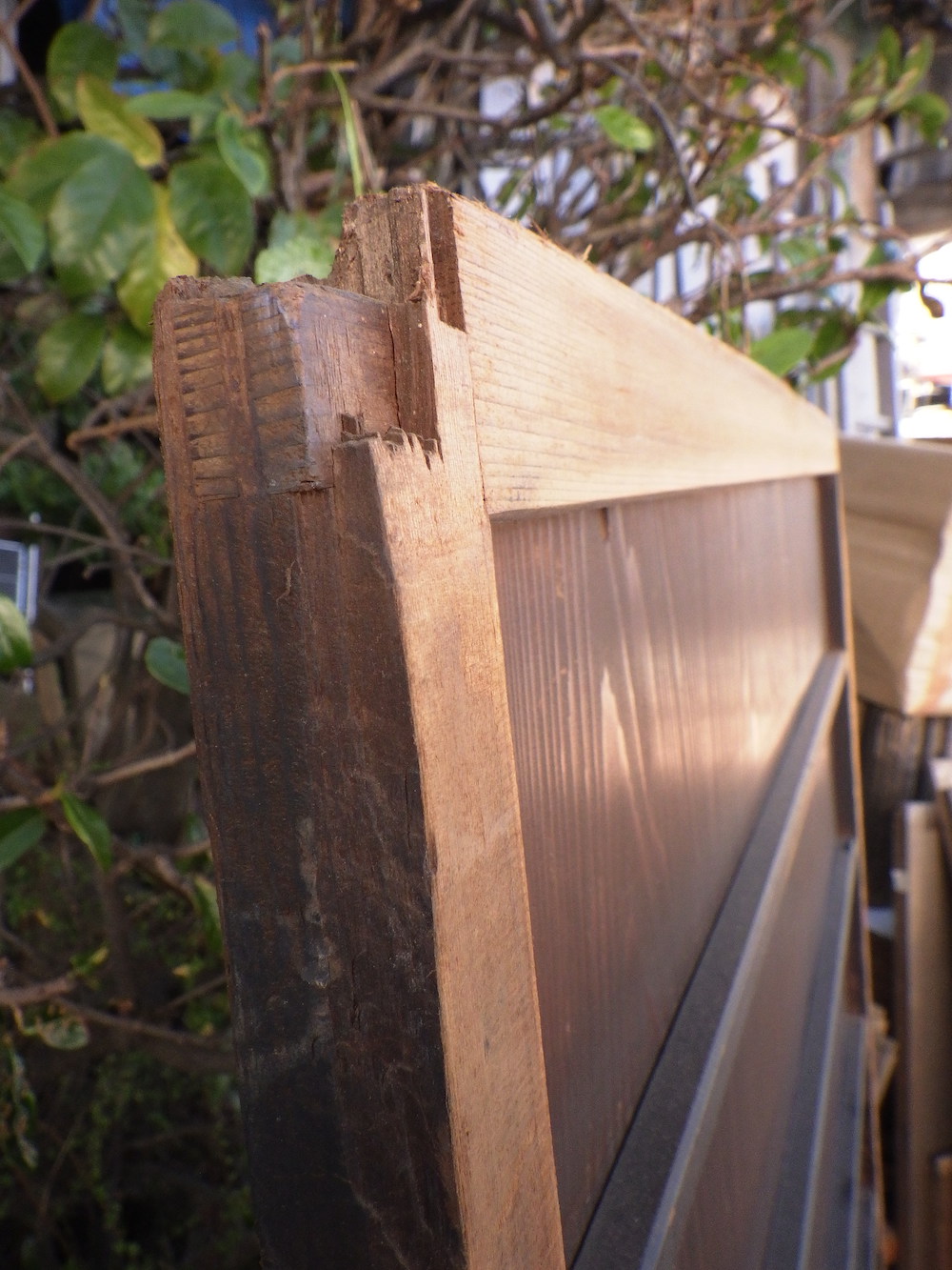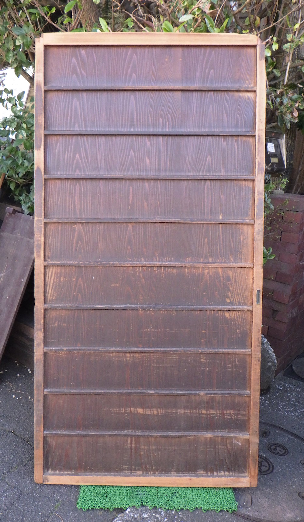 板に割れや枠に傷みがあるため。渋谷区松濤にあった民家より入荷いたしました。在庫のうち1点は高さが1740mmです。上部の両かどに割れが有ります。