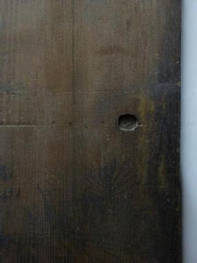 絵柄が入っている板戸です。板にそのまま、松のようなものが描かれており、当店では比較的珍しい品物です。 杉障子とは、杉板に絵を描き、壁代わりに利用していたと思われ、 室礼としての襖障子が応用されたものと考えられます。 高さ1,745mm幅897mm厚み33mmです。 大分時間を経ておりますので、多少の歪みがみられます。 詳細お問い合わせください。 もう一枚の在庫の状態については、下の写真にてご確認ください。