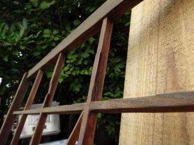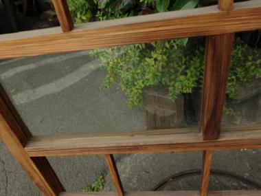 わけあり品。桟に割れている箇所があるため。ガラスは透明のヨレガラスが使われており、あじわいがあります。