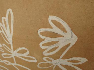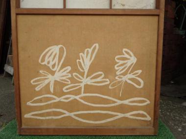 腰高のところに大変ラフな手描きと思われる図画が入っています。計算されていないような印象なのに、なぜか、枠の中にちゃんとおさまっています。