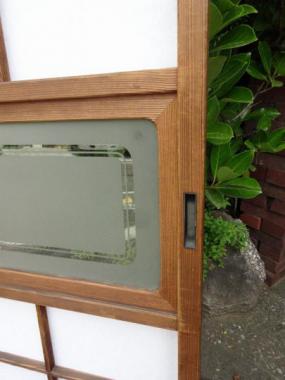 模様ガラスの横額が入っています。葛飾区の民家で使われていたものです。