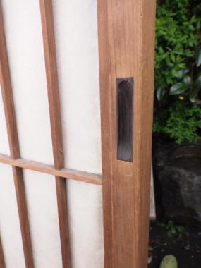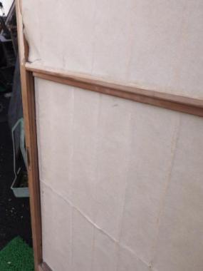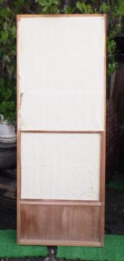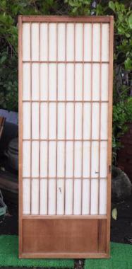 わけあり品。猫間になっているデザインですが、ガラスがない状態です。在庫のうち2枚は猫間のない竪組障子戸になります。腰に傷んでいる箇所が見られます。