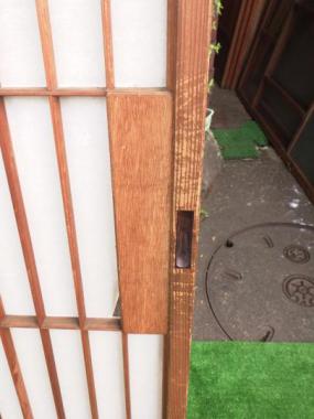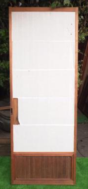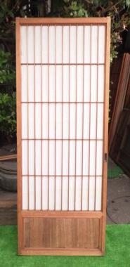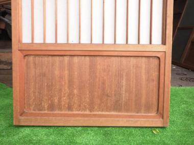 わけあり品。桟に傷みがあるため。千葉県成田市の昭和7年に建てられた旅館で使われていたもので、丁寧なつくりが魅力です。在庫のうち2枚は引手の隣の格子が板張りです。