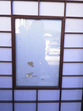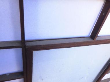 わけあり品。桟に痛みがあるため。神奈川県三浦市の農家で使われていたものです。透明ガラス使用。裏面は障子で覆われている状態です。