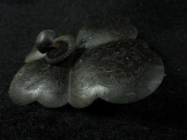 一見するだけでは気づかない細やかで繊細な彫刻が入っています。スレなどにより消えてしまうこともあるのですが、比較的良い状態で模様がのこっています。上品で落ち着いた意匠です。
