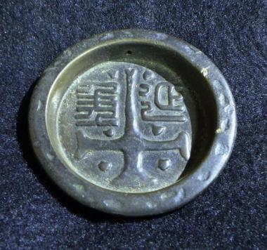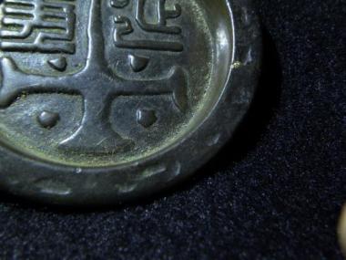 二文字漢字が書かれています。淵にランダムに削りの跡が入っているところが珍しいです。どこか通好みの味わいの引lき手です。
