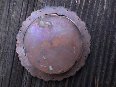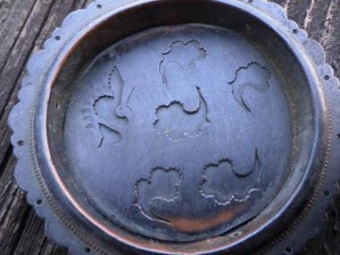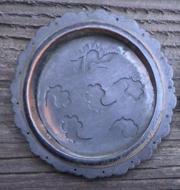 何やら意味深な絵柄です。鳥のモチーフで多い鶴のように見えます。その下にあるのは5つの火の玉でしょうか・・・不思議な形のものが飛んでいます。鶴の目がとぼけている感じなのが可愛いです。