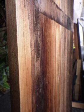 経年変化により木目模様に沿っておうとつができています。日に焼けた色味もグラデーションがかっており見飽きない素材です。