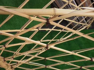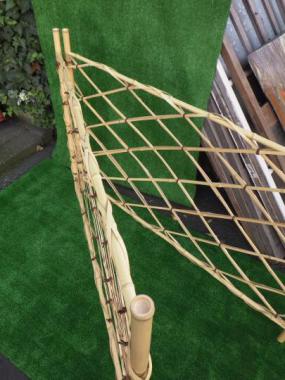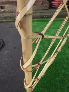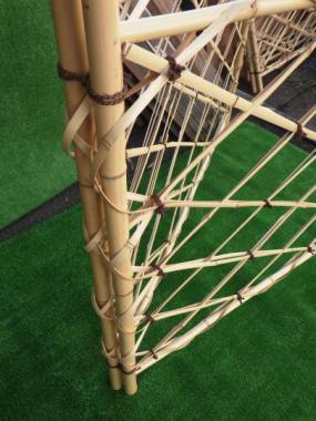 吉田五十八先生が設計された料亭で使われていたものです。二つに折り畳めます。寸法は二つに折りたたんだ時の大きさを計測しています。竹の直径はおよそ28mmほどです。
