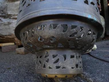 竜と文字の柄の間から光がもれるようなデザインです。大きさもあり、荘厳さが漂います。 高さ900mm直径260mmです。 詳細お問合せください。