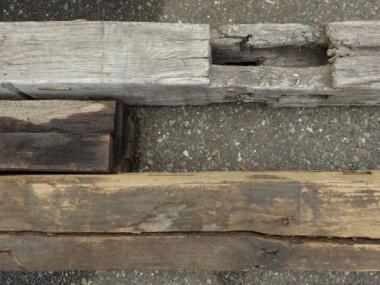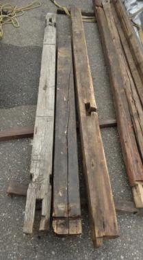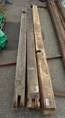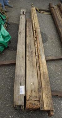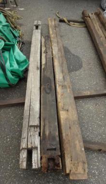 栗材の柱と梁が混ざっています。梁は柱としてもお使いいただけます。この他に2430×125×125のサイズのものが15,000(税抜)円、2570×150×125のサイズのものが19,000(税抜)円で、それぞれ一点ずつあります。