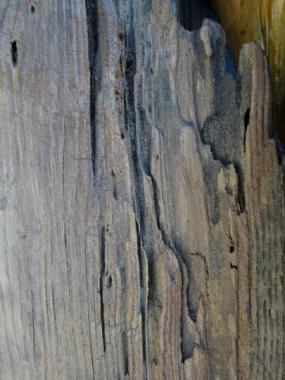 クリ材の床板です。汚れを落とした後に、柿渋を表裏両面に塗装しております。