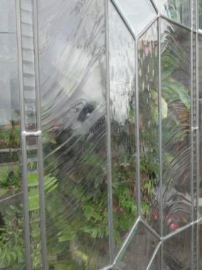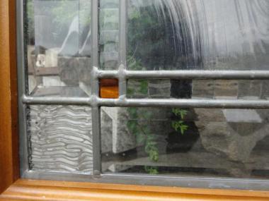 大変味わいのあるガラスが数種類使われており、見ごたえがあります。透明ガラスですので、外光を取り入れられ、比較的軽やかな印象になるかと思います。