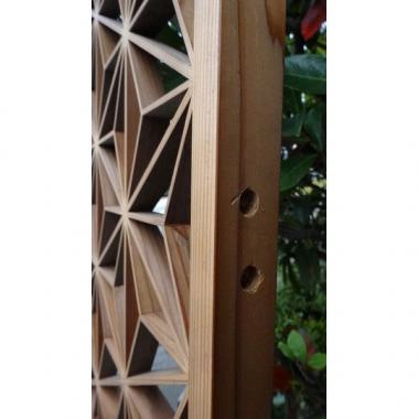 麻の葉模様が全面に施された贅沢な欄間です。お屋敷の仕切りとして使われていました。 高さ1,580mm幅920mm厚み30mmです。 詳細お問い合わせください。 欄間としてもご利用いただけますが、 特殊なサイズですので、他にも色々な用途にご利用いただける規格です。
