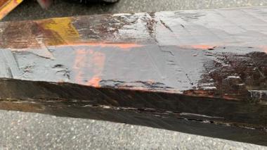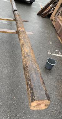 東京都の東久留米の民家で使われていた松の梁です。はつりの跡がしっかりと残る見応えのある梁です。