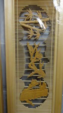 松竹梅のモチーフです。組子の中に有機的に配された彫刻が魅力的です。