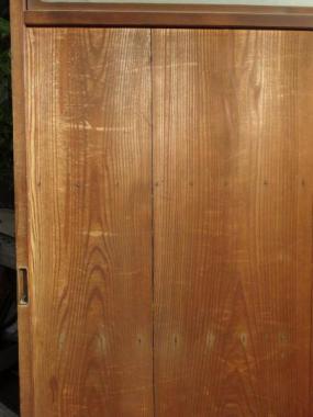 わけあり品。曇りガラスに割れている箇所があるため、お値引きしてのご案内です。腰にも隙間が見られます。ガラスを入れ替える場合は、通常価格になります。素朴なデザインで、空間に馴染みやすい一品。