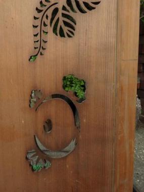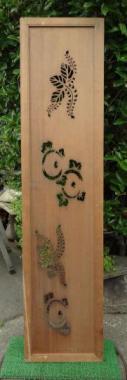 わけあり品。割れているところがあるため。植物の模様が描かれています。モチーフの緩やかな配置が独特です。