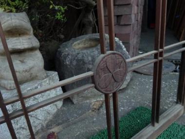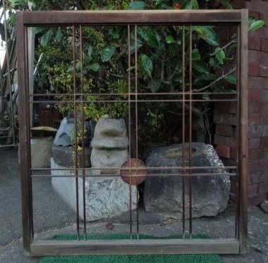 中央にはいった彫刻が家紋のようにも見えます。ガラスは入っていません。
