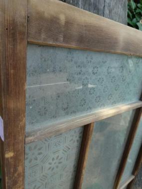 二種類の花柄模様のガラスが使われています。近づいて見た時に味わいがあります。
