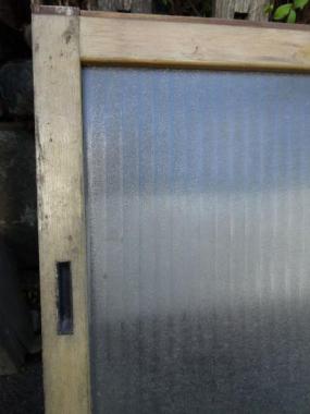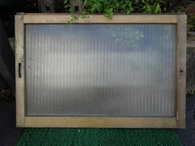 日焼けなどによる色のむらが良い味わいです。そのまま使うのも魅力的です。針葉樹の木目が素朴な印象です。柿渋などで塗装しなおしても素敵に仕上がりそうです。ガラスは梨地のモールガラスが使われています。