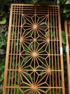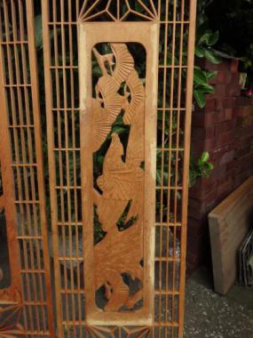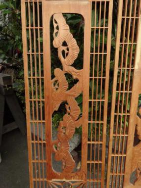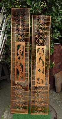 松と鷹の彫刻です。麻の葉の組子と彫刻の組み合わせになっていて見栄えが良さそうです。枠はない状態での販売となります。