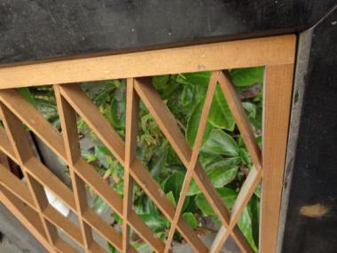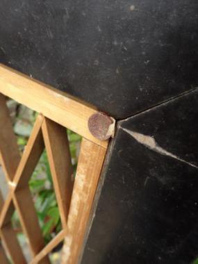 くせのないデザインで、比較的厚みも薄いので工夫すれば仕切りとしても使えそうです。枠の黒とそのままの木材の色の組み合わせでぐっと引きしまった空間になりそうな一品。画鋲が刺さっている箇所があります。