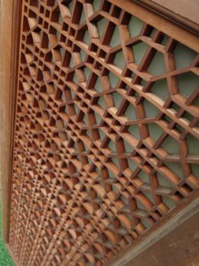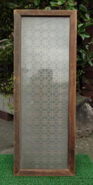 どことなく東洋的な雰囲気を漂わせる組子のデザイン。取り付けた時の光の入り具合や模様の見え方の印象が楽しみな一品です。裏側には曇りガラスがはめ込まれています。