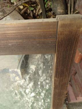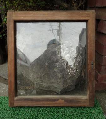 正方形よりも少し縦長でスマートな印象です。どこかで見かけたかな、と思うような定番の窓枠に、透明のガラスがはめ込まれています。色味、経年変化具合、どれをとってもバランスの良い一品です。