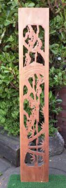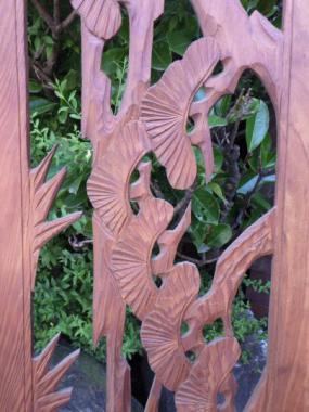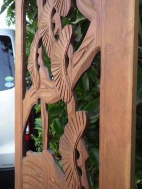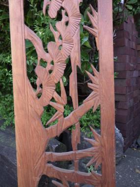 松と竹が描かれている欄間で、伝統的なモチーフです。凝りすぎない彫刻にどこかほっと心和む見た目です。