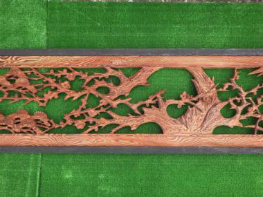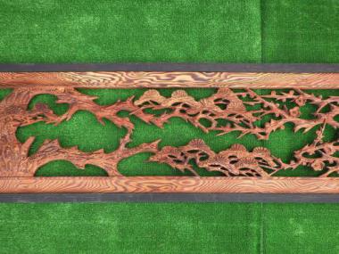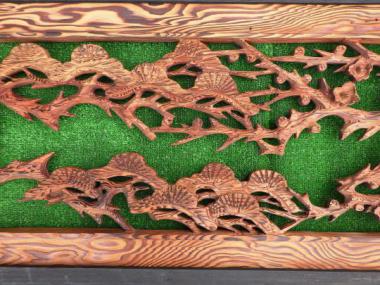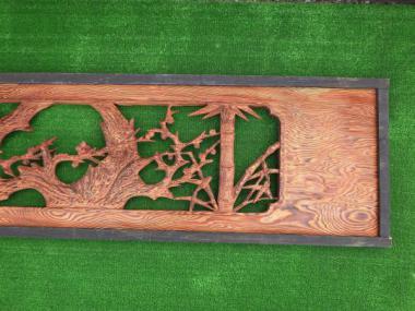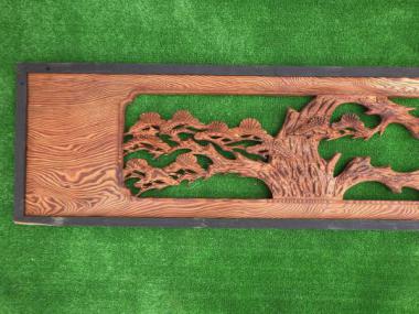 松竹梅の模様が彫られています。幅が大きく、使われないまま当店に入荷されました。寸法は梱包材(黒い枠)を含めた大きさになります。
