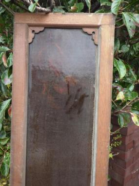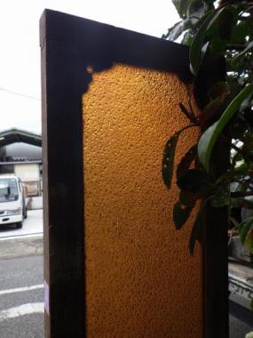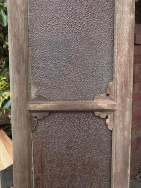 わけあり品。装飾の部品が欠けているため。大胆に一色のみを用いたガラスの欄間です。窓としても使えます。橙色の温かな色の光が、ほっとくつろげる空間を演出してくれそうです。