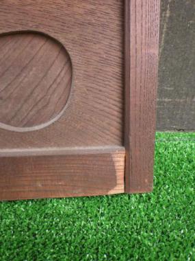 わけあり品。在庫がそれぞれガラスのおさえが無いもの、下桟に傷みがみられるものとなっているため。腰の控えめな装飾が魅力です。