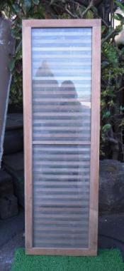 オーソドックスなデザインの格子欄間です。どんな場所にも合わせやすいナチュラルな味わいが魅力です。透明ガラスが2枚入っています。