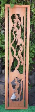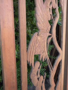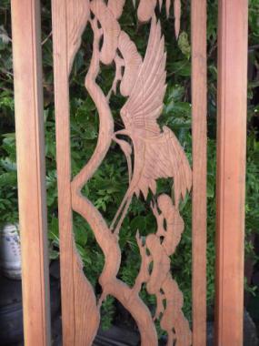 わけあり品。在庫のうち2枚(※印)がわけあり品になります。彫刻部分がたわんでしまっているため7,000円のところ5,000(税抜)円にお値引きしております。東久留米市の民家で使われていたものです。在庫全て以下のように寸法が異なります。 ①395×1715×30 ※②395×1690×30 ※③405×1700×30