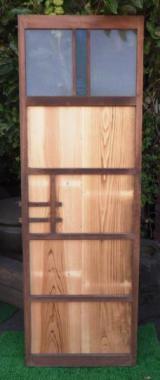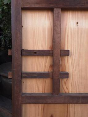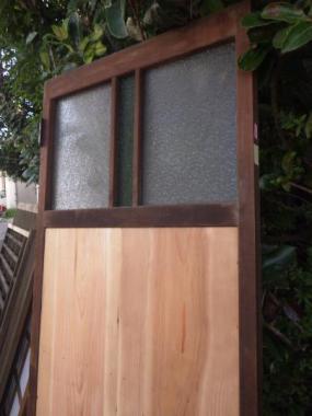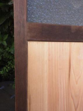 板部分のみ新材を使うことで清々しい印象になっています。もともとの枠素材との色のコントラストもよく調和しています。珍しい緑色のダイヤガラスが使われています。