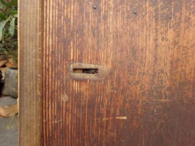 わけあり品。取っ手が破損しているため、値下げした価格でのご案内です。曇りガラスが明かり窓として使われています。
