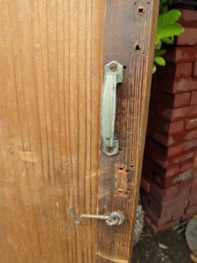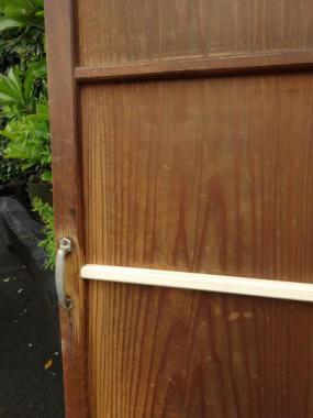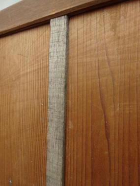 おさえに栗材を使っています。裏面の一部に新材を使用。明かり窓には曇りガラスにシンプルなデザインを施しており、全体を引き締めています。