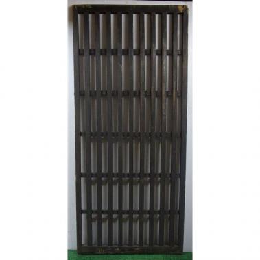 経年変化による木目のおうとつがあり、味わい深い杉の格子戸。高さ1,750mm幅755mm厚み32mmです。 掲載写真のように、一部傷みがあります。 詳細お問い合わせください。