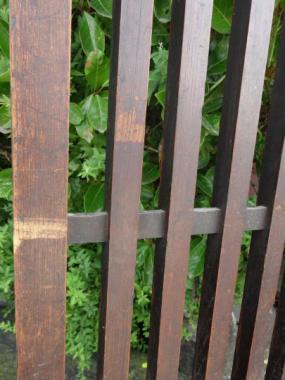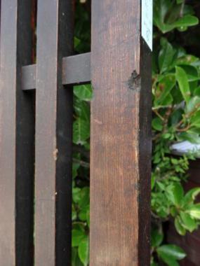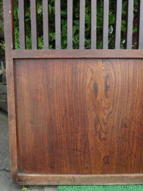 明るめの色味で木目もはっきり出ており、見栄えする格子戸です。腰板に少しよれている個所があります。