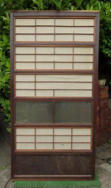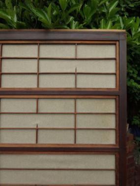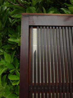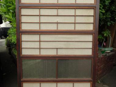 わけあり品。千本格子の左上に欠けているところがあります。裏面の障子の桟にも多数欠けが見られます。下まで千本格子が入っているので比較的珍しい大阪格子戸です。