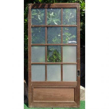 曇りガラスと透明なガラスの両方が使われています。腰付きで、シンプルなつくりです。 高さ1,800mm幅897mm厚み33mmです。 詳細お問い合わせください。