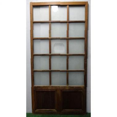 スギ材の腰付格子ガラス戸です。中央部のガラス部分だけ、三枚目の写真のデザインになっています。 .高さ1,743mm幅875mm厚み30mmです。 詳細お問い合わせください。 ※販売価格は、単品での価格で表示しています。