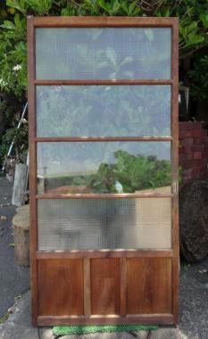 一段目と四段目に模様ガラスが入った杉材のガラス戸です。 高さ1,718mm幅840mm厚み30mmです。 詳細お問い合わせください。 ※販売価格は、単品での価格で表示しています。