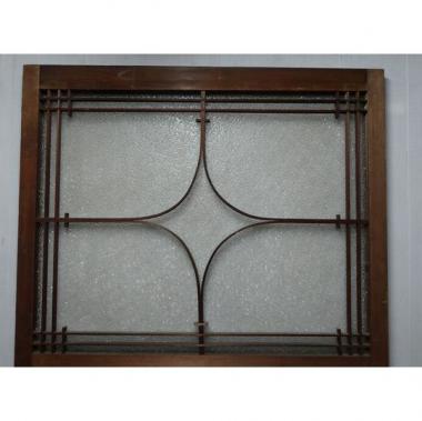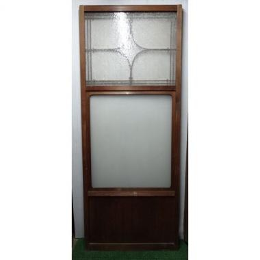 印象的なデザインの腰付ガラス戸です。シンプルで、和洋どちらでも馴染みがよさそうです。 真ん中のガラスはくもりガラスが使われています。 高さ1,745mm×幅700mm×厚み32mmです。 詳細お問い合わせください。