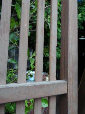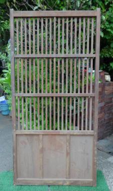 わけあり品。もともとはガラス戸として使われていましたが、ガラスは付いていません。格子戸として使えるデザインです。
